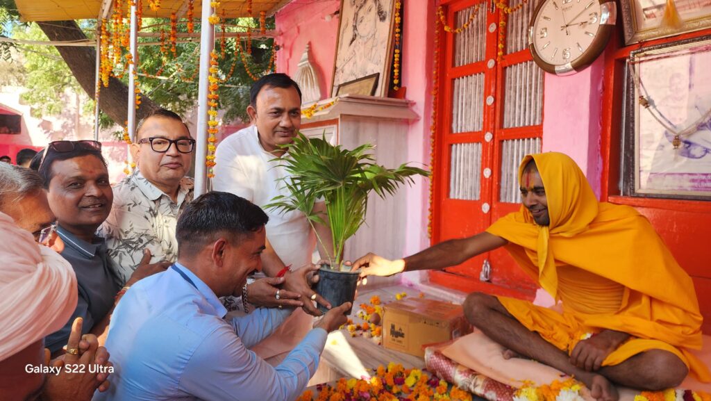 इस दौरान गादीपति नृत्य गोपाल राम जी महाराज के दर्शन कर आशीर्वाद लिया।वही गुरु महाराज एवम पर्यावरण प्रेमी मेलनर्स नरपत खा ने बांठिया का उनकी शादी की वर्षगांठ के शुभ दिन पर पौधा भेंट कर बधाई व शुभकामनाएं दी।