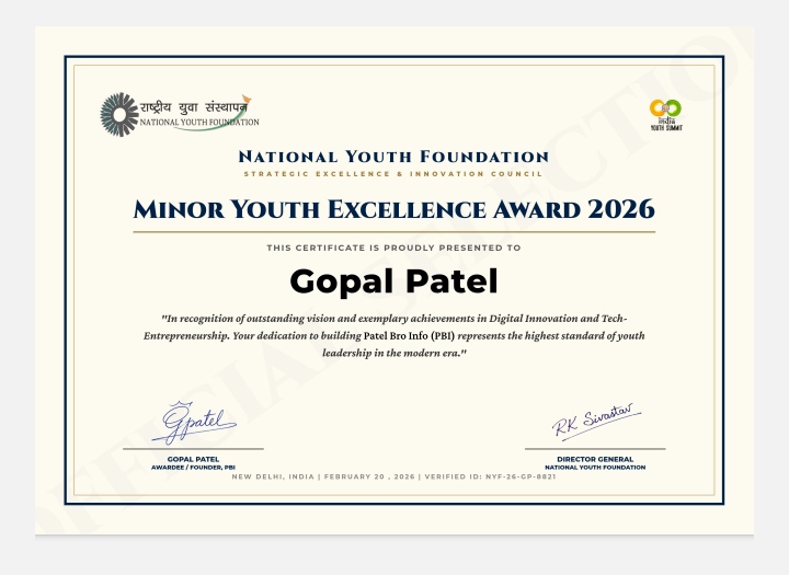 राजस्थान के बालोतरा के युवा गोपाल पटेल ने ‘माइनर यूथ एक्सीलेंस अवार्ड 2026’ हासिल कर डिजिटल और टेक्नोलॉजी क्षेत्र में अपनी मजबूत पहचान बनाई है। कम उम्र में यह उपलब्धि उन्हें उभरते हुए युवा टैलेंट के रूप में स्थापित करती है।